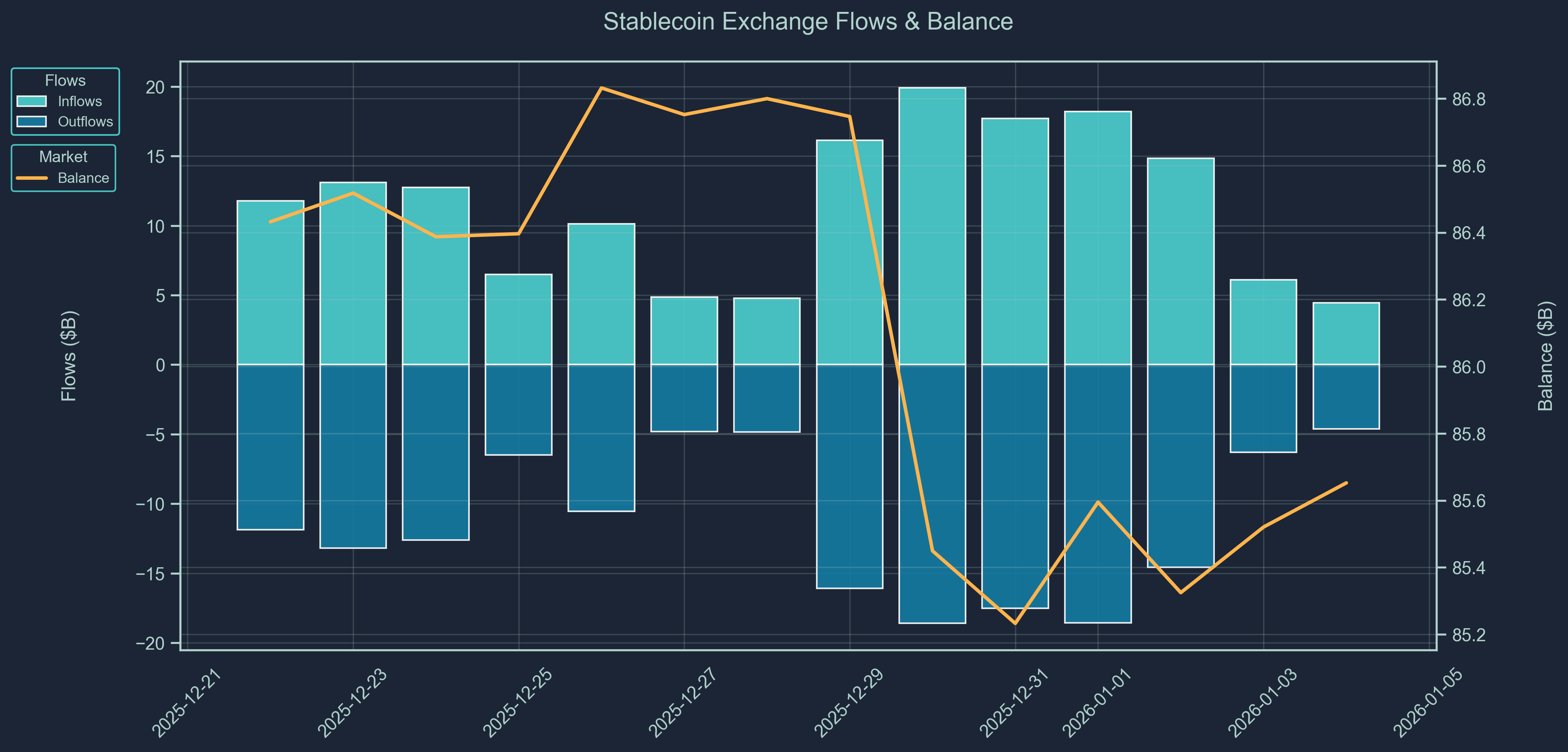 Rising stablecoin balances on-chain or on exchanges often indicate inbound liquidity, capital sitting on the sidelines potentially awaiting deployment into crypto assets. Large inflows may precede buying activity, suggesting growing market participation or renewed confidence.