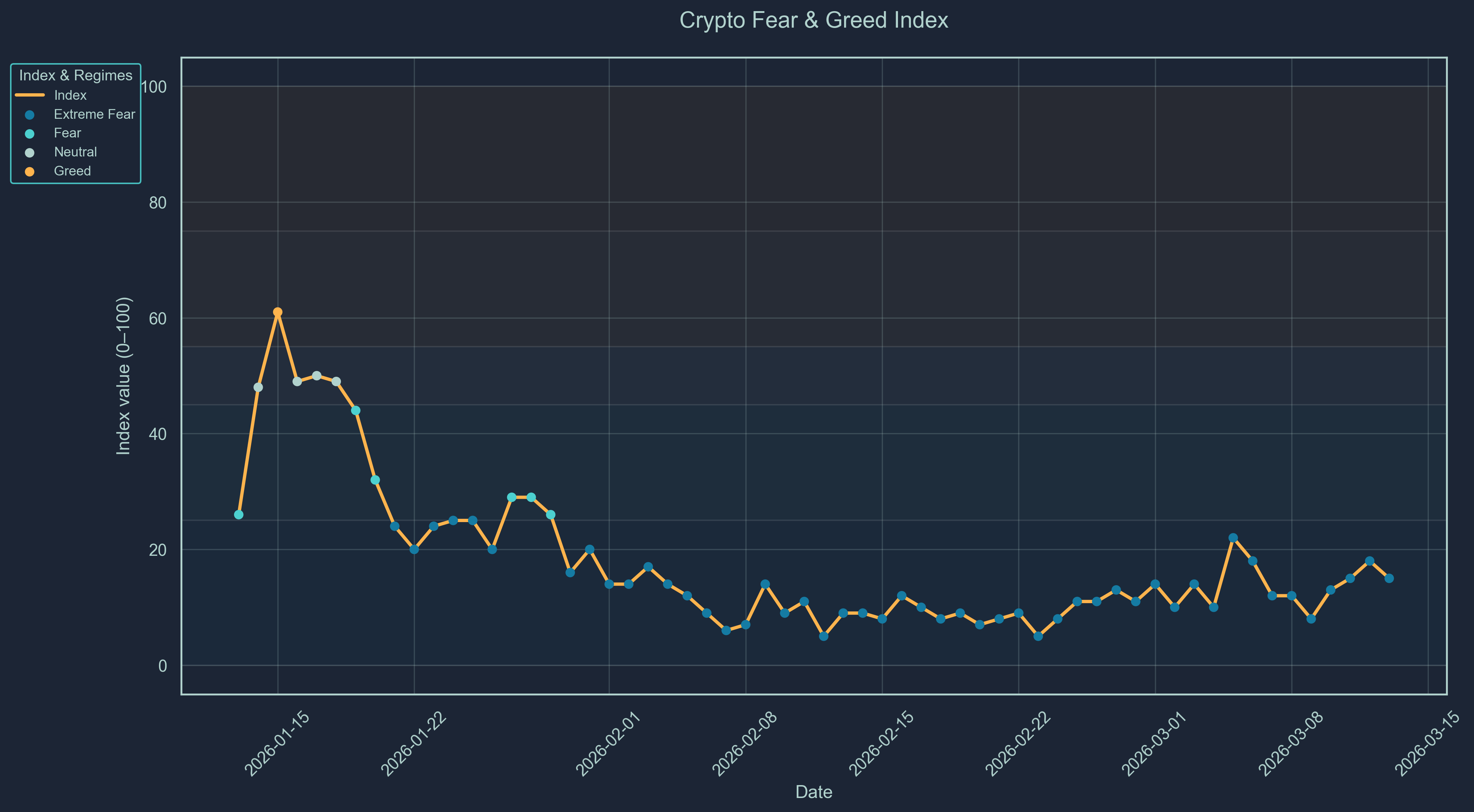 The digital asset market remains locked in a state of extreme fear, with the Crypto Fear-and-Greed Index tightening further to 15. Despite a notable 30-day recovery across major tokens, led by ETH (+12.07%) and SOL (+12.93%), sentiment is heavily weighed down by a decoupling from traditional equities, as the S&P 500 slumped 4.15% over the same period. This defensive posture is reinforced by an Altseason Indicator of 43.0, signaling a continued "Bitcoin-biased transition" where capital is concentrated in the most established assets.