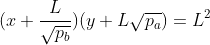 With pa, pb defining the bounds of the range, x,y the assets and L the liquidity provided.